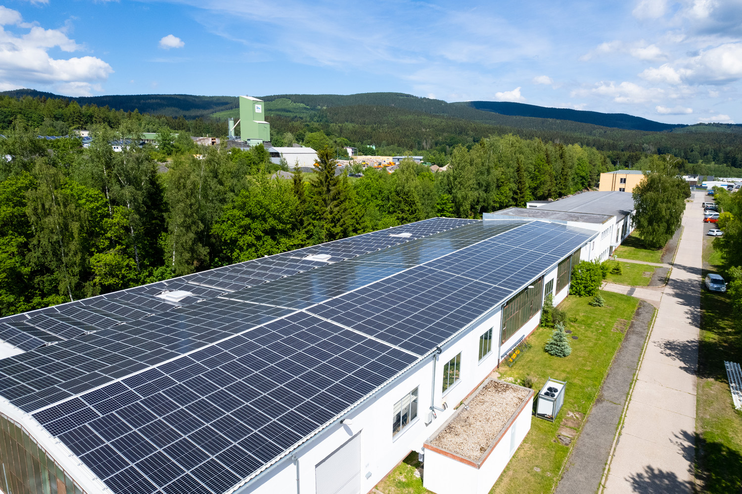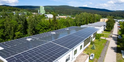 Die 2022 in Betrieb genommenen Photovoltaik-Anlage auf unserem Gebäude versorgt unsere Produktion mit eigenem Strom.